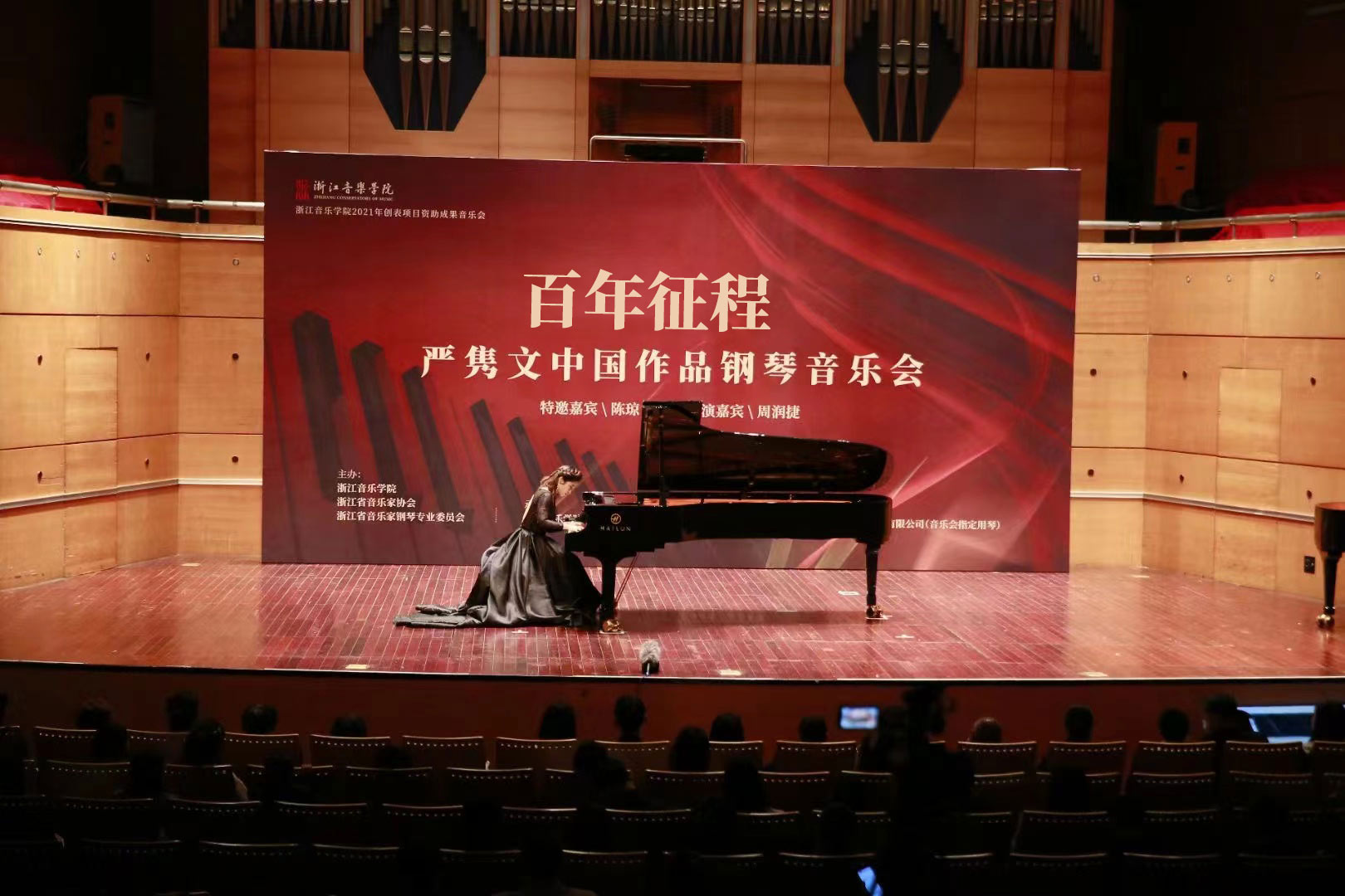 2021年11月18日晚,來自杭州的社會各界人士、高校師生相聚杭州大劇院·音樂廳,一同感受了一場別開生面的音樂思政課。這場別致的鋼琴音樂會,用海倫九尺鋼琴優(yōu)美的旋律帶領(lǐng)聽眾們一同重溫建黨百年征程中的珍貴瞬間。