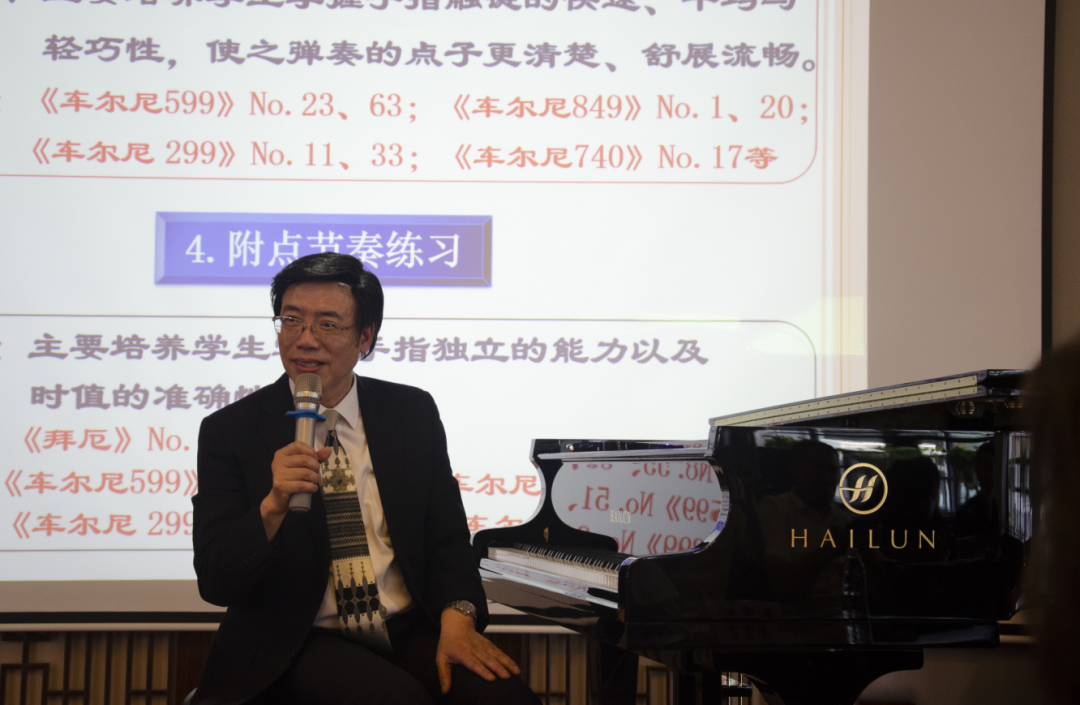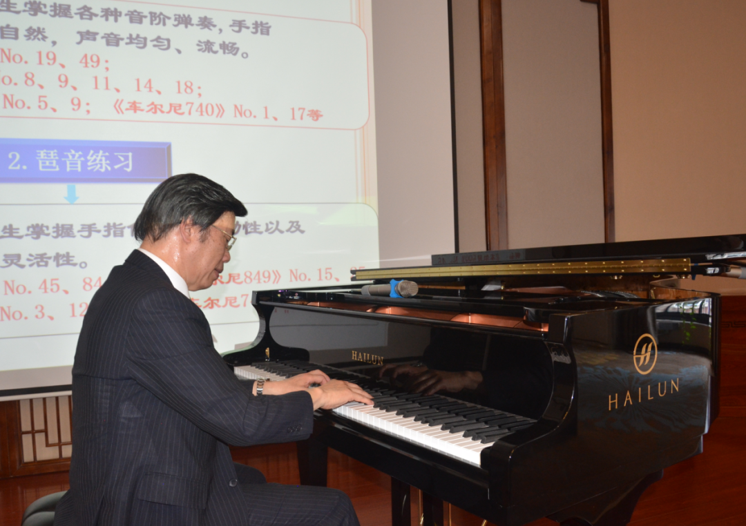 講座中,謝教授重點講解了鋼琴老師應(yīng)如何進行常態(tài)化的鋼琴教學(xué),同時以嚴(yán)謹(jǐn)?shù)慕虒W(xué)思路,生動、風(fēng)趣的語言,通過對實例的講解與示范教學(xué),向聽眾傳授鋼琴教學(xué)的經(jīng)驗,給聽者帶來了全新的鋼琴教學(xué)觀念。