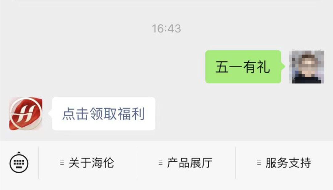 2. 回復“五一有禮”點擊進入登記頁面;