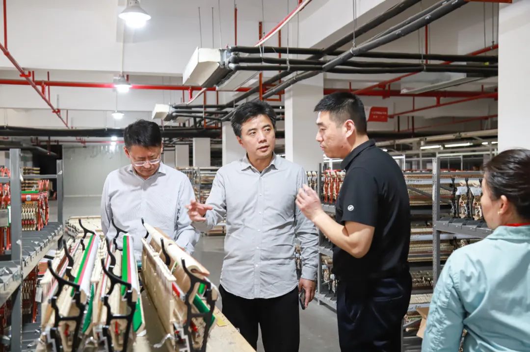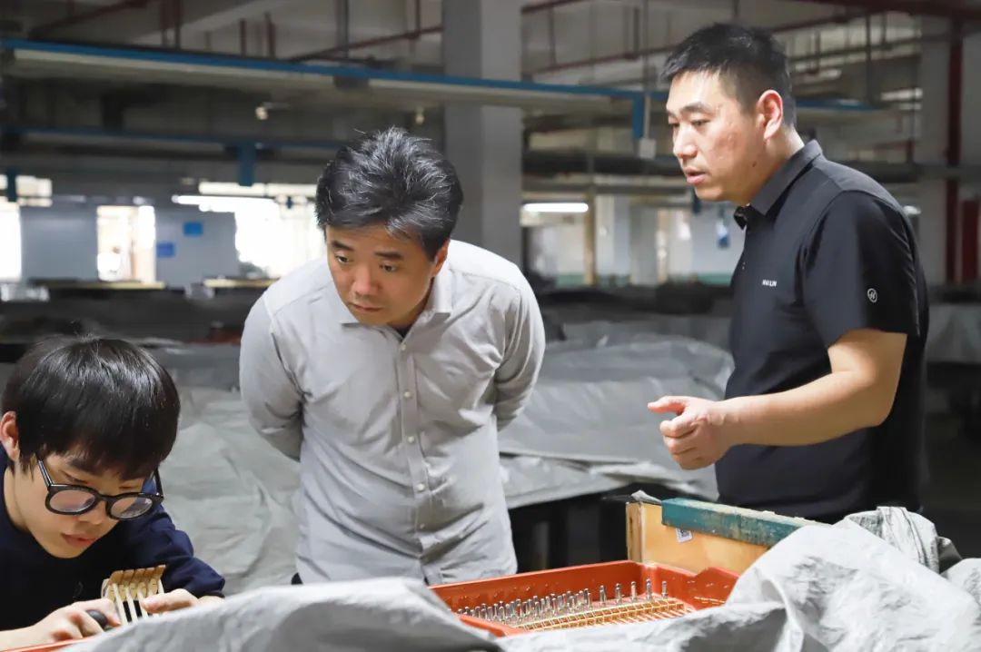 在生產車間,杜飛經理熱情地為來賓們作詳細介紹,楊曦帆院長零距離地了解了海倫鋼琴從零部件到完全裝配成型的生產過程,對海倫鋼琴的品牌、生產規(guī)模、質量管理等方面贊不絕口。