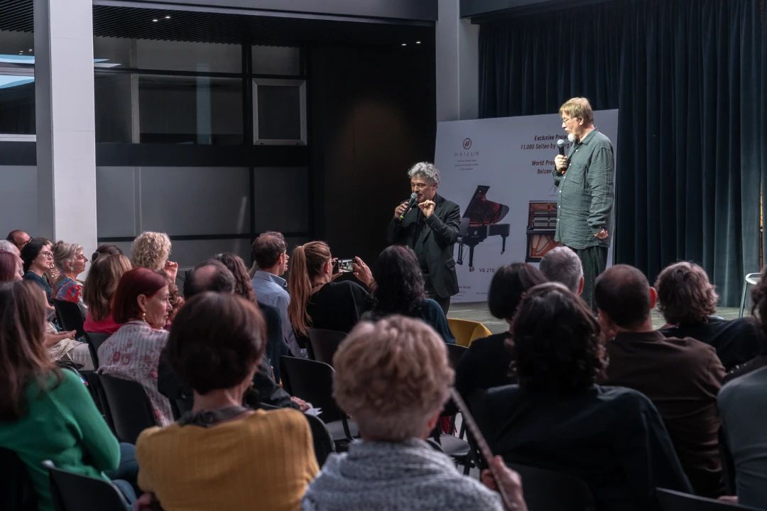 在記者發(fā)布會(huì)和聽(tīng)眾分享會(huì)上,奧地利著名作曲家格奧爾格·弗里德里希·哈斯感謝海倫鋼琴為此次盛會(huì)作出的貢獻(xiàn),并邀請(qǐng)海倫鋼琴高級(jí)技師康綠新先生上臺(tái)再次表示感謝,他對(duì)海倫鋼琴技術(shù)團(tuán)隊(duì)的專業(yè)技術(shù)表示高度贊賞,以至于想帶海倫技術(shù)團(tuán)隊(duì)去巡演。
